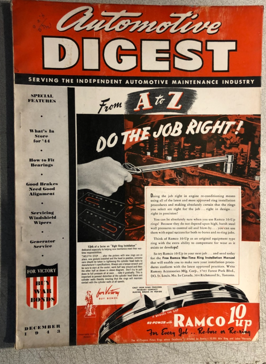 AUTOMOTIVE DIGEST wartime magazine December 1943 Niehoff vintage advertising