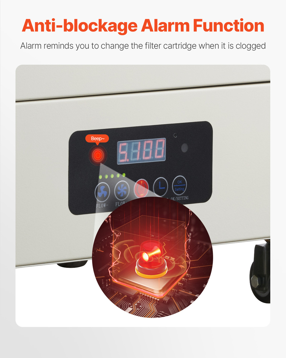 Smart Filter Alert: No more guessing when to replace the filter! When the filter element is saturated or blocked, the soldering fume extractor will emit both sound and light signals, reminding you to replace the filter promptly, avoiding inhaling harmful fumes and protect your health.