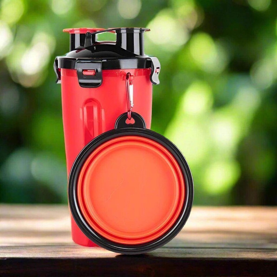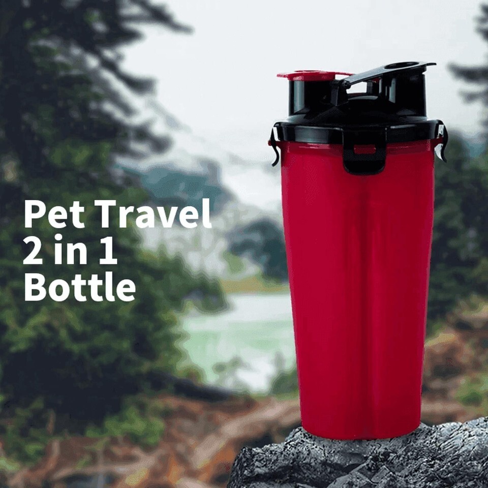 This Pet Travel 2 in 1 Bottle Set is a convenient and versatile accessory for pet owners on the go. With its unique design, it allows for both drinking and eating on the go, while the foldable bowl offers comfort and portability. Perfect for pet owners who want to make sure their furry friends stay hydrated and nourished while on the go. The bottle has 2 separate chambers, separately sealed, for food and water. The convenient collapsible bowl makes break time a breeze and available anywhere! Water chamber has a small debris filter as well.