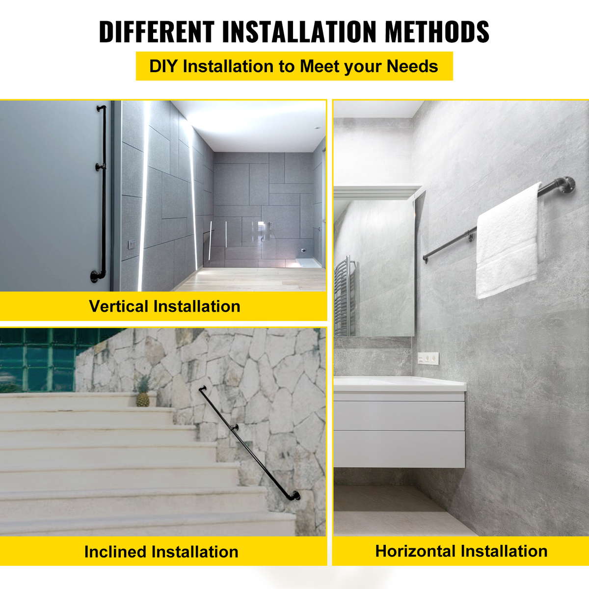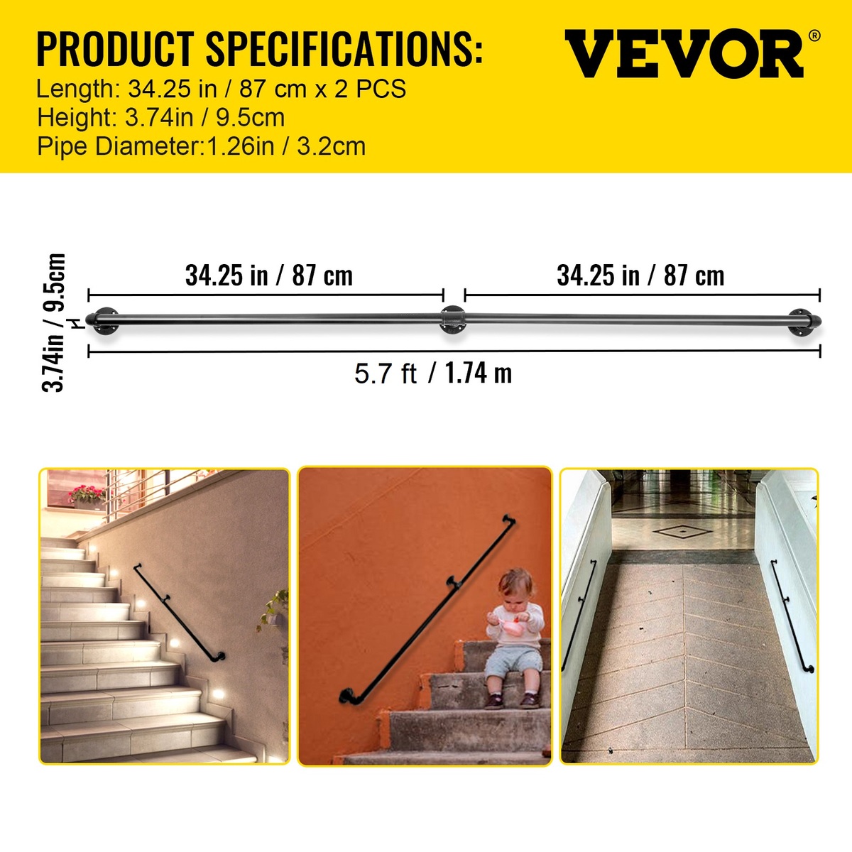 VEVOR 6FT Pipe Stair Handrail 440LBS Carbon Steel Wall Mount Indoor/Outdoor