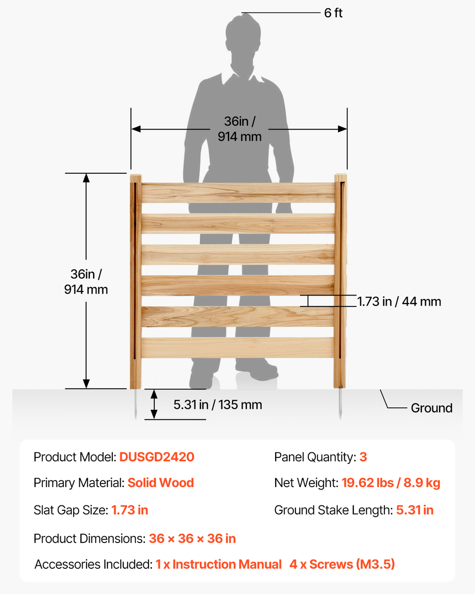 Enhance Privacy Beautify Spaces: This stylish wooden privacy fence is perfect for concealing unsightly outdoor items such as air conditioning units, trash bins, and pool equipment. It also doubles as a garden privacy screen, keeping children and pets safely away.