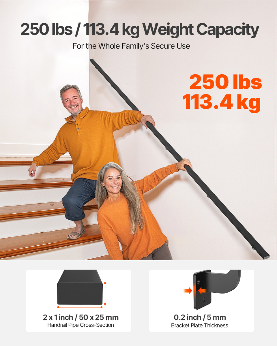 250 lbs Load Capacity: This wall mounted stair railing offers strong support with a weight capacity of up to 250 lbs/ 113.4 kg. Its robust base plate and sturdy materials provide stability, making it ideal for supporting various items