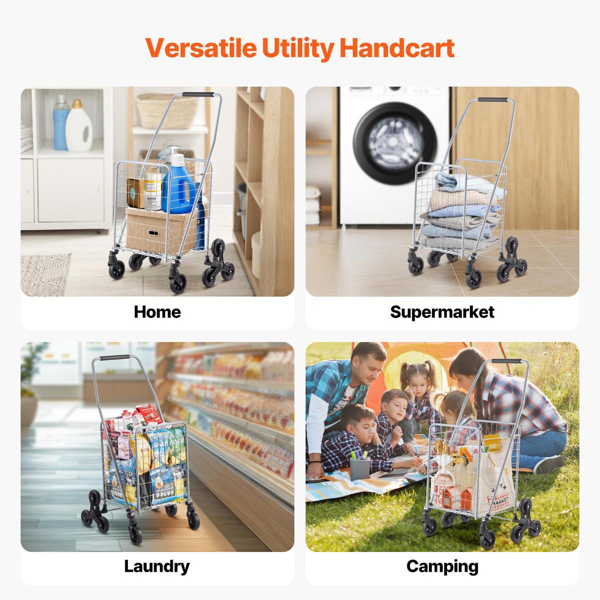 Versatile Applications: With a spacious 45L capacity, this cart for stairs is more than just a transporter. It's your supermarket shopping buddy, home goods carrier, storage bin for household items and gardening tools, and beyond! Unleash your creativity and discover its endless uses!