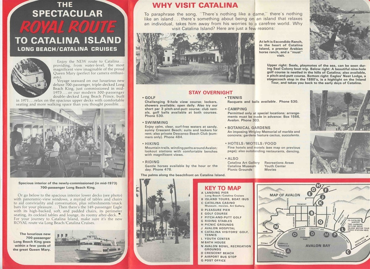 Catalina Island via Long Beach Spectacular Royal Route Cruises Brochure 1950's