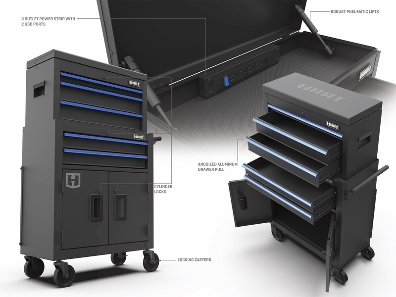Introducing the 24-inch Hart Steel Tool Chest Combo, a premium storage solution designed for professionals who demand the best. This high-end tool chest offers a robust 400 lb heavy-duty weight capacity, ensuring it can handle the most demanding tasks with ease. Crafted from heavy-duty steel, it provides unrivaled durability and strength, making it a reliable addition to any workshop or garage. The 24-inch Hart Tool Chest Combo is equipped with a built-in power strip, allowing you to keep your tools charged and ready for use. Each of the ball-bearing drawers glides effortlessly, with a 50 lb per drawer load capacity, providing smooth access to your tools and supplies. With a total storage capacity of 6,236 cubic inches, you?ll have ample space to organize all your essentials efficiently. Security is a top priority with the Hart Tool Chest Combo, featuring a keyed locking system for both the chest and cabinet, ensuring your tools are safe and secure. The gas strut pneumatic easy-open and close lid offers effortless access to the top compartment, adding to the convenience and functionality of this tool chest. The powder-coated finish not only gives the tool chest a sleek and attractive look but also ensures exceptional durability, resisting scratches, chipping, and fading to keep it looking pristine for years to come. Effortless mobility is guaranteed with the 4-inch by 1-inch casters, allowing you to move and position the tool chest with ease. Elevate your workspace with the 24-inch Hart Steel Tool Chest Combo, a perfect blend of strength, functionality, and style.