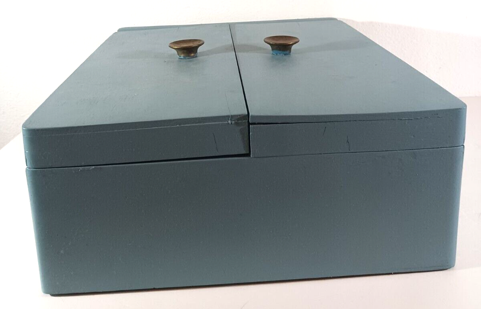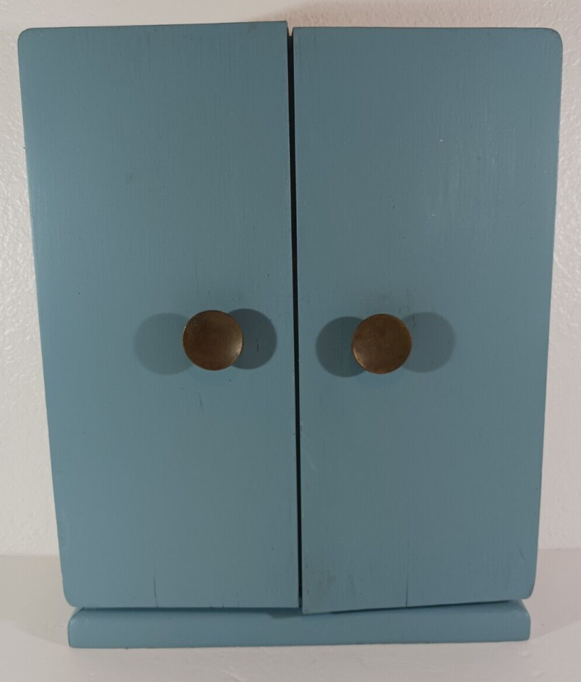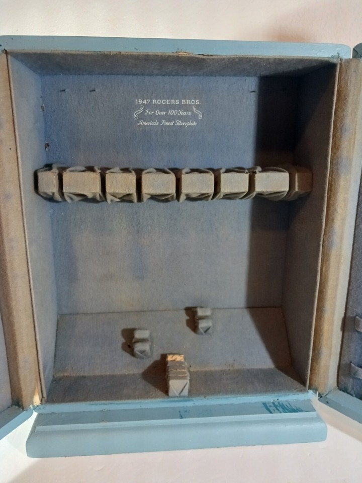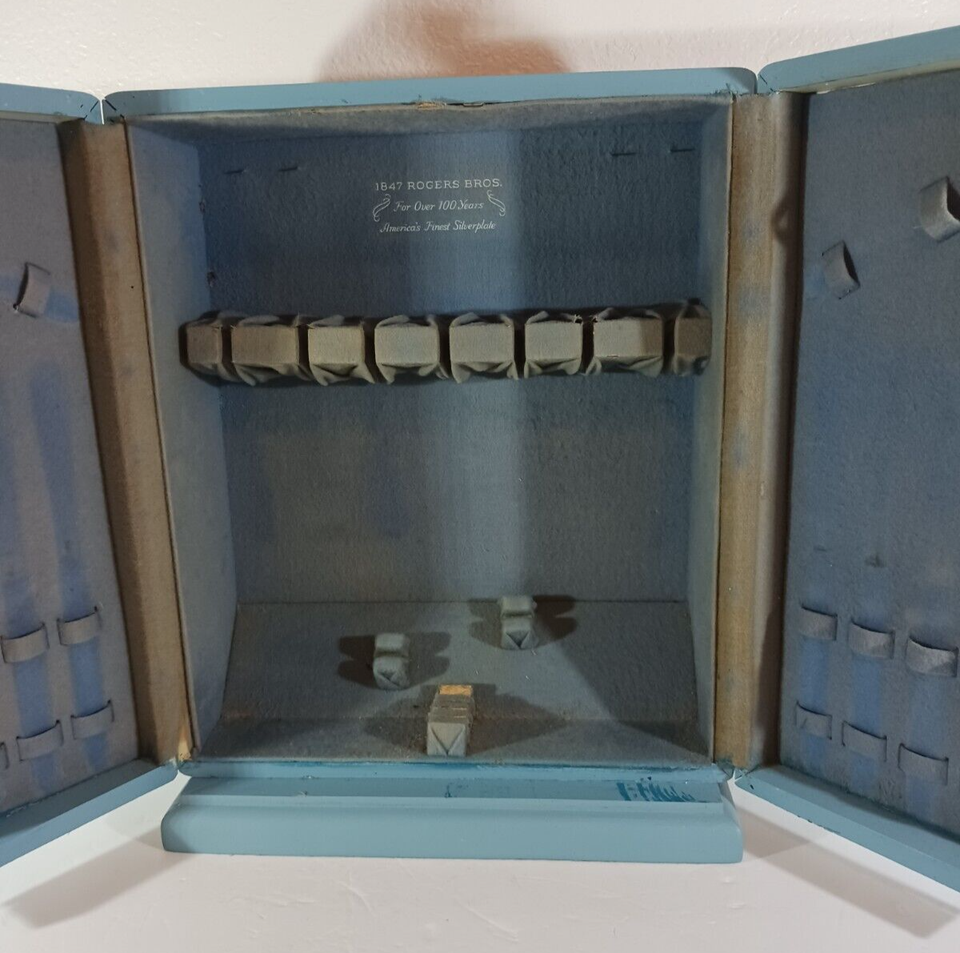 Upright 1847 ROGERS BROS FLATWARE WOOD STORAGE BOX CHEST Wardrobe Style BLUE