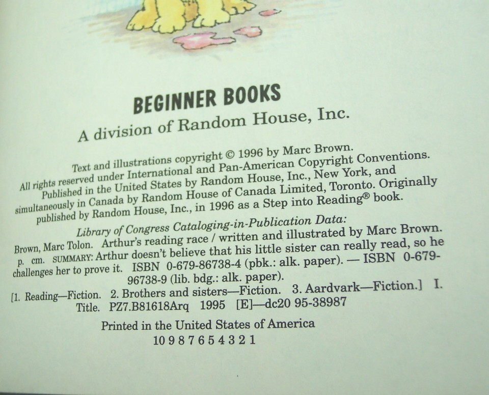 Vintage 1996 Marc Brown ARTHUR'S READING RACE Hardcover Book Beginner Books NEW