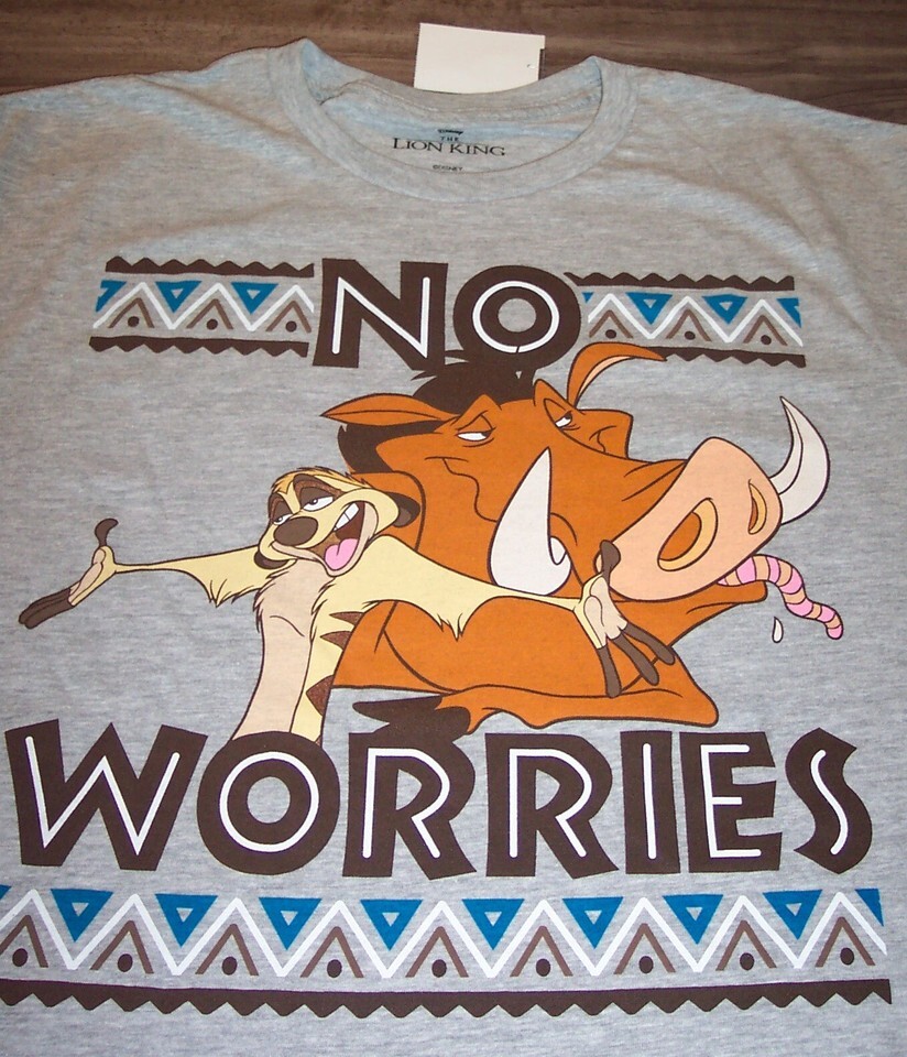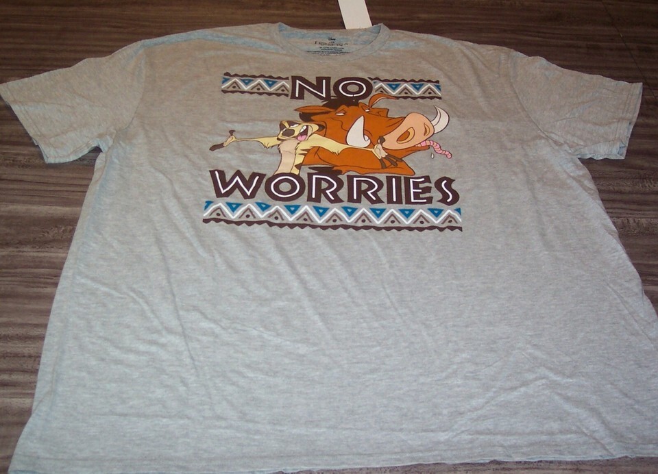 This is a WALT DISNEY THE LION KING Pumbba and TImon "NO WORRIES" T-shirt. It is a size 2XL and it is NEW with the tag. It is 26 inches from armpit to armpit and 31 inches in length. Combine items to save on shipping. AD