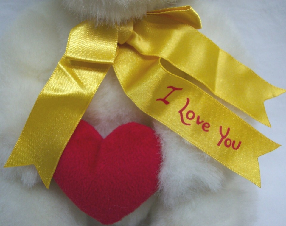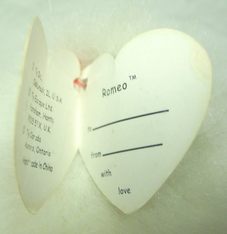 This is a VINTAGE TY Classic WHITE ROMEO TEDDY BEAR "I LOVE YOU" Plush Stuffed Animal Toy. Made by TY in 1997. It is 14 1/2 inches tall in standing position. It is in Great Condition with the tag. Tag Has Some Creases. SOFT! It is CLEAN! No Stains, Tears, or Defects. Combine auctions to save on shipping. Please contact me if you need to make other payment arrangements. EAG