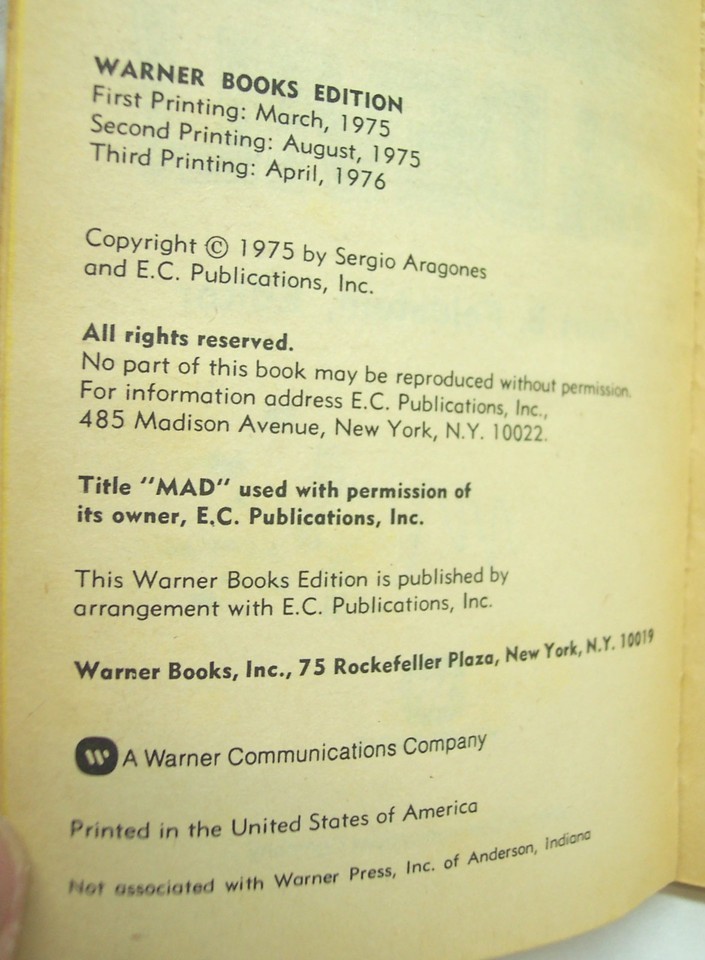 This is a Vintage Sergio Aragone's MAD As The Devil Paperback Book. Third Print from Feb 1976. It is in Good Condition. The Cover has some wear from use as expected. No Tears, Missing pages or scribbles. Made by Warner Books. Combine auctions to save on shipping. ELAG