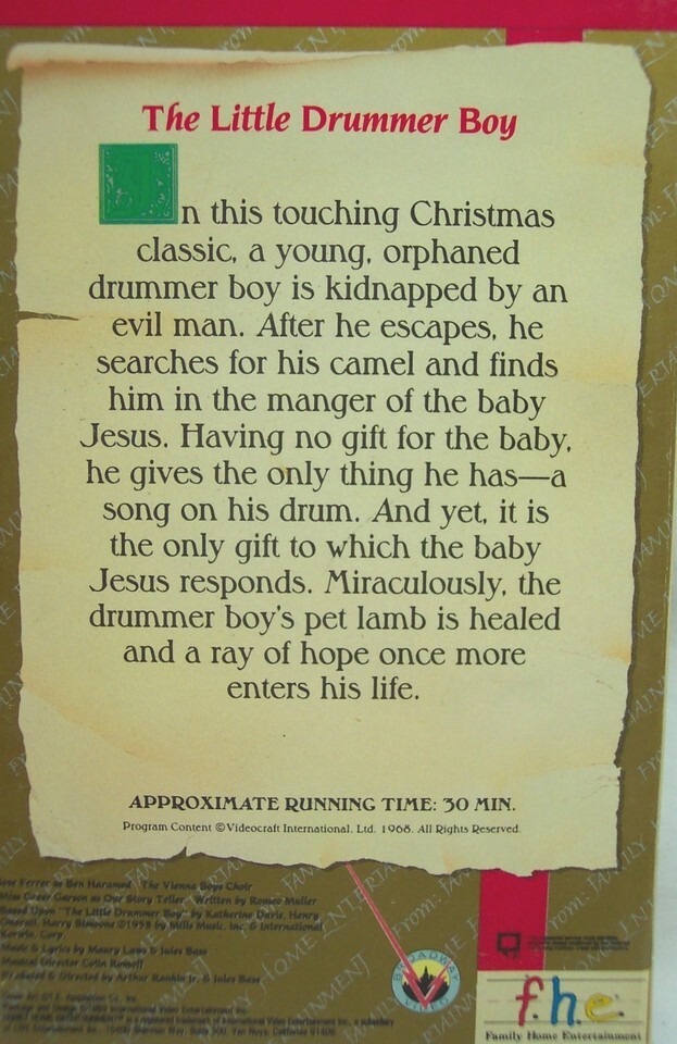 This is a Vintage THE LITTLE DRUMMER BOY Video From 1992. It has a runtime of 30 minutes. It is in great condition. Case has minor wear from use, but nothing major. Combine auctions to save on shipping. EAG o