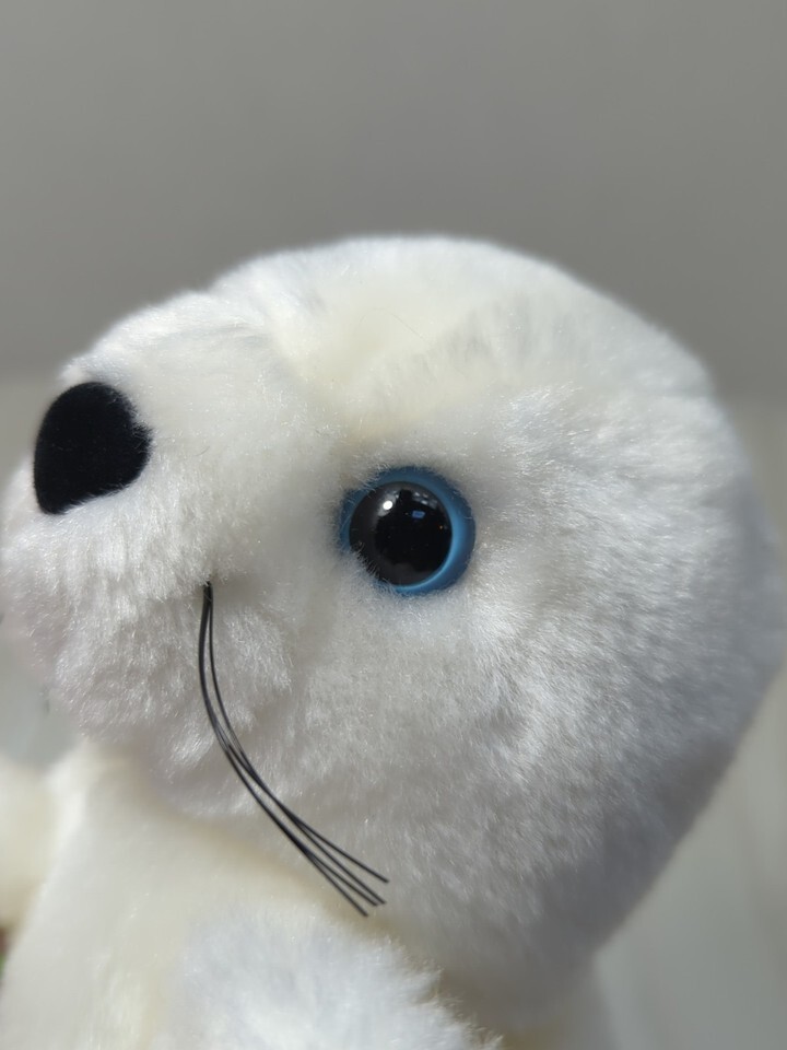 Milaca Mills Plush small white baby seal pup blue eyes beanbag black nose