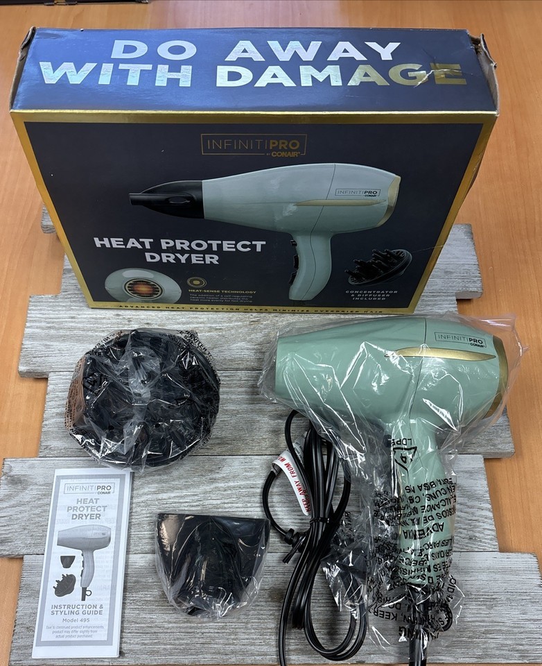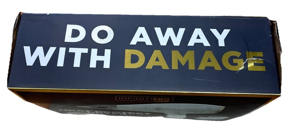 Damaged Box - Conair Infiniti Pro Heat Protect Hair Dryer. Package may contain shelf ware , retail stickers, cosmetics imperfections . Boxes are damaged.