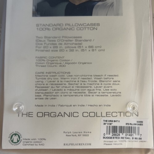 Ralph Lauren Spa Organic 2 King Pillowcases Ochre Gold New Vintage