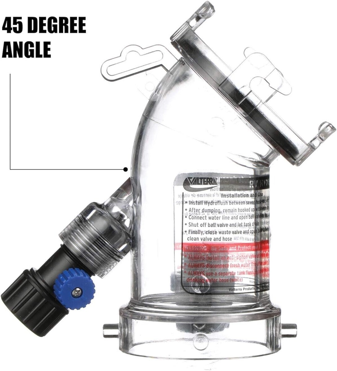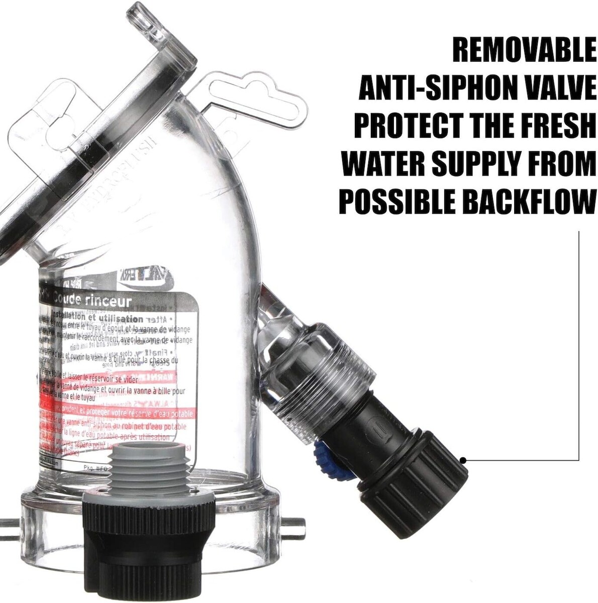 45 Degree Hydroflush Attachment with Removable Anti-Siphon Valve for RV, Camper, Trailer -