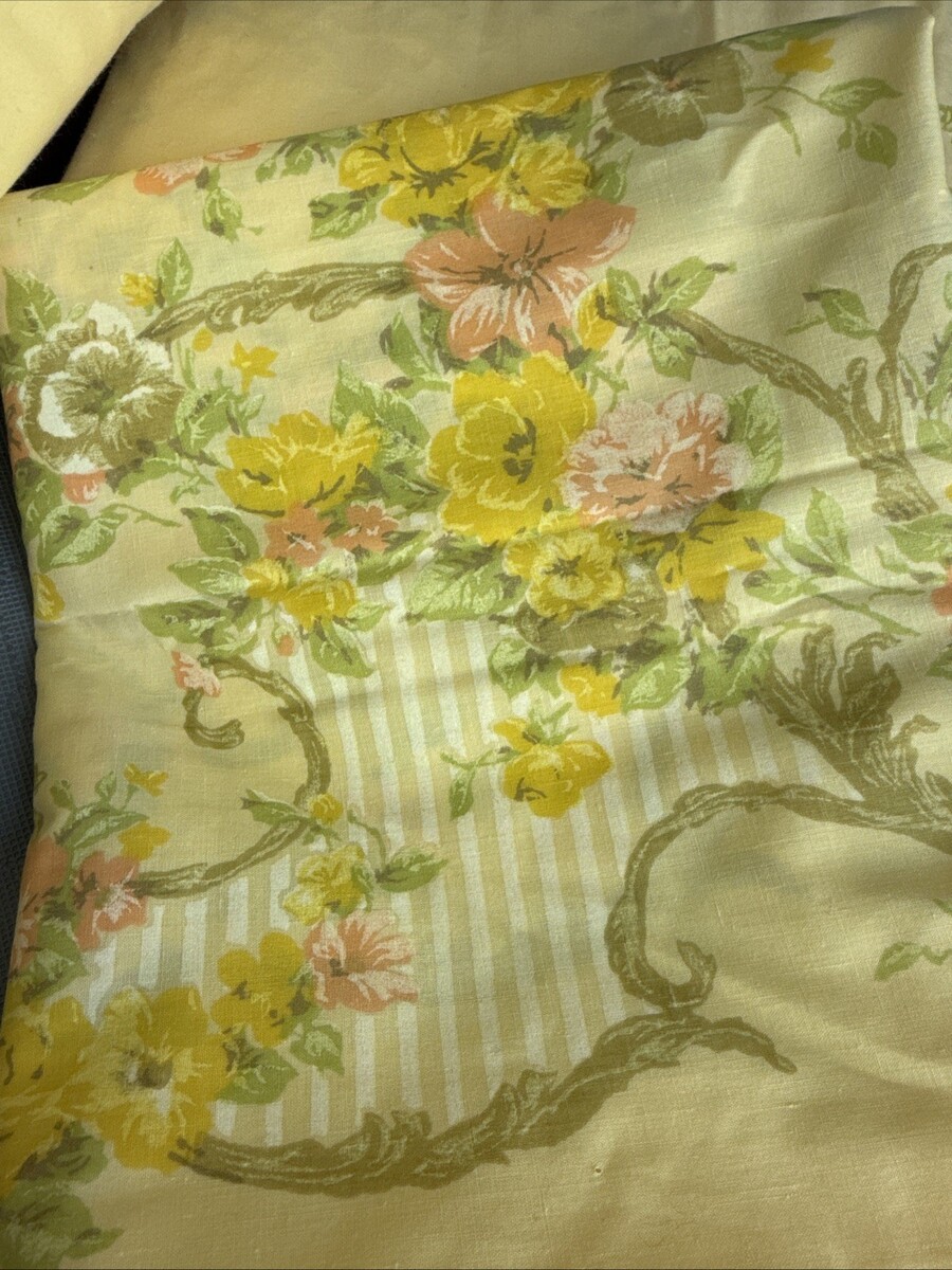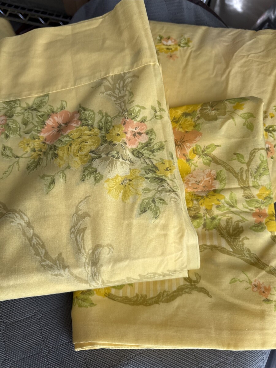 JP Stevens Utica Elegante Yellow Floral Twin Sheet Set 3 Pcs Vintage MCM