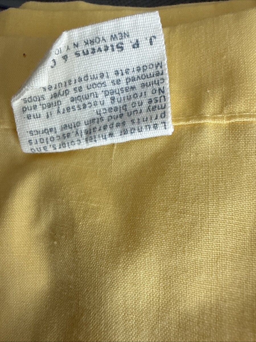 The JP Stevens Utica Elegante Yellow Floral Twin Sheet Set is a vintage collectible from the 1970s, manufactured in the United States. This set includes a pillowcase, fitted sheet, and flat sheet, all featuring a beautiful floral pattern in a multicolor design. The percale material adds a touch of quality and style to the set, making it a charming addition to any bed and bath collection. Perfect for those who appreciate retro aesthetics and unique patterns in their linens.