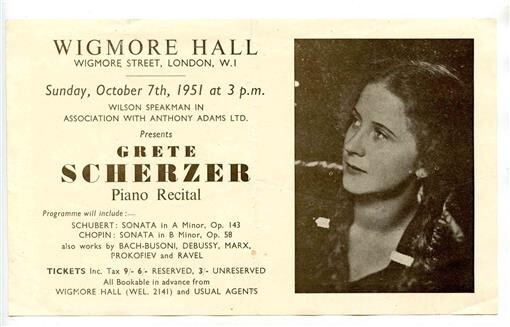 Grete Scherzer Piano Recital Flyer Wigmore Hall London 1951