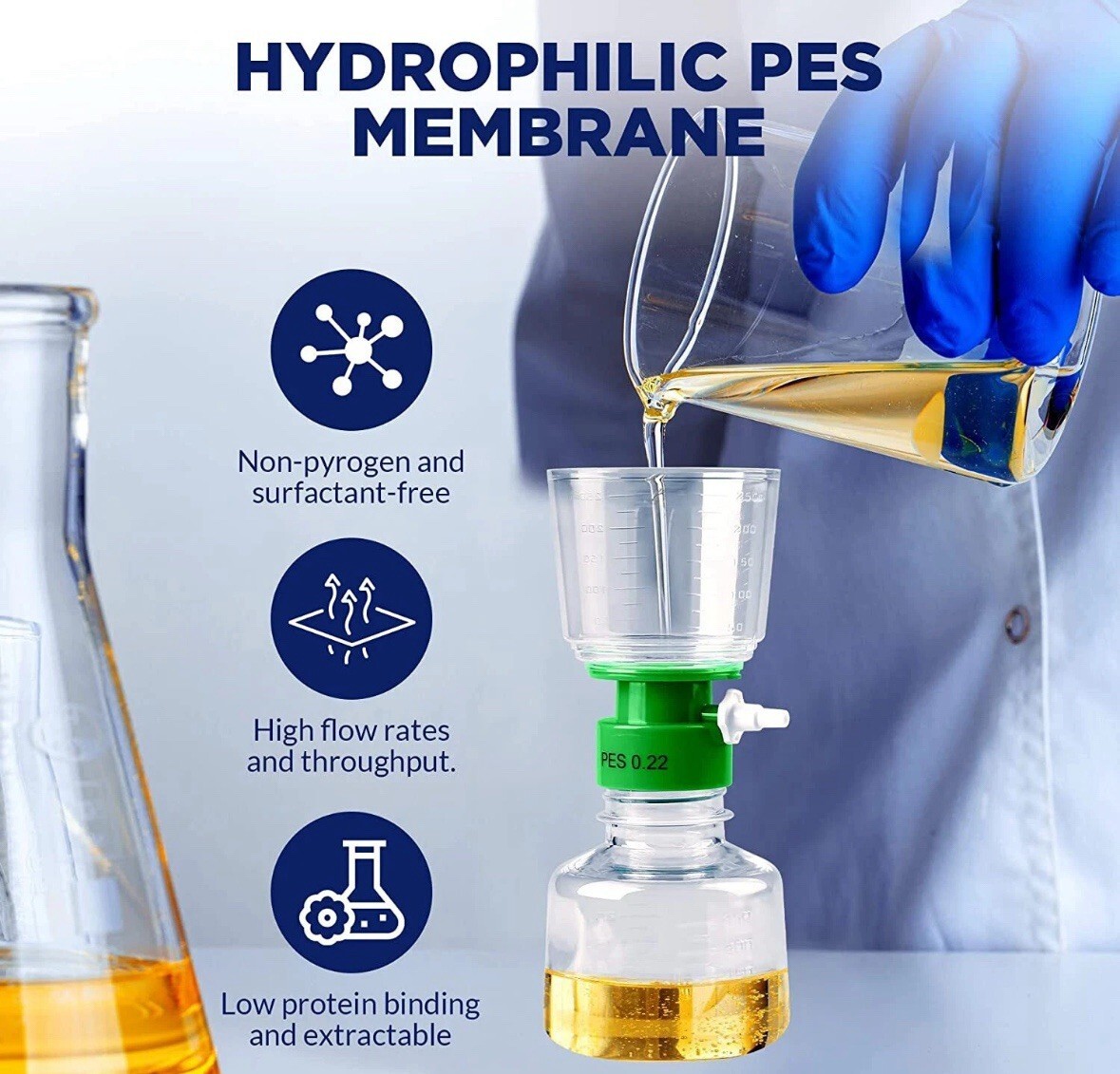4-Bottle Top Vacuum Filter 500ml 0.22μm Sterile Filtration System PES Membrane