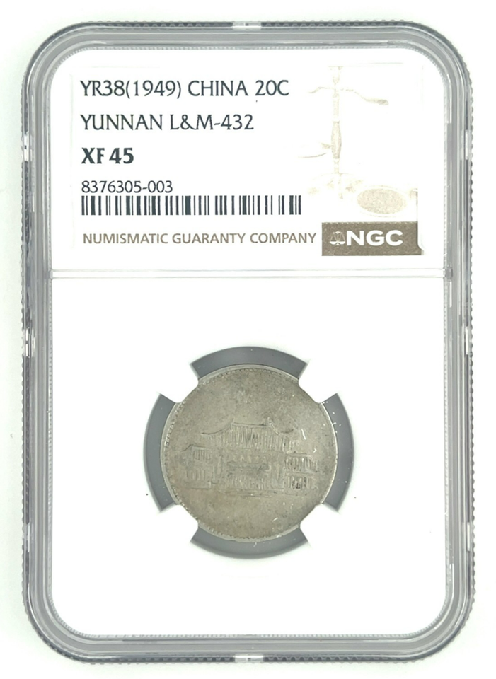 1949 China 20C Silver Yunnan L M 432 Graded by NGC as XF45
