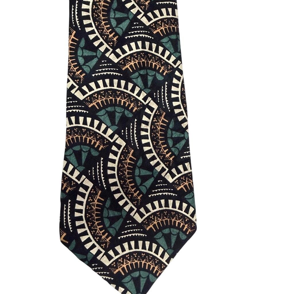 VTG Christian Dior Monsieur Art Deco Geometric Silk Tie 1980s Designer