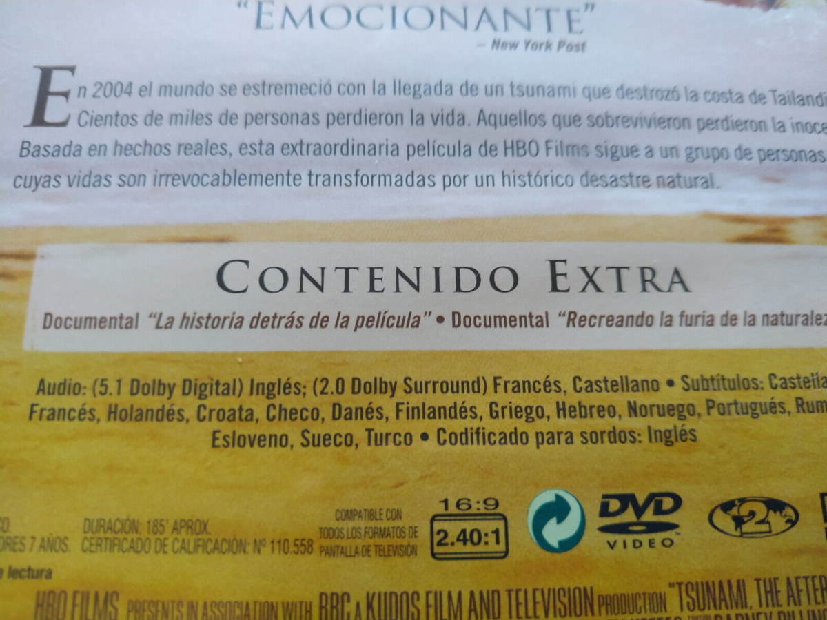 Tsunami El Dia Despues Bharat Nalluri HBO - 2 X DVD Region 2 Español Ingles Am