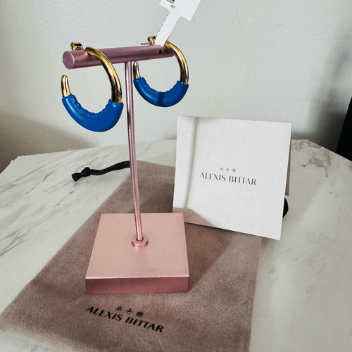Alexis Bittar Retro Memphis 14K Yellow Goldplated Half-Hoop Earrings, Blue, NWT