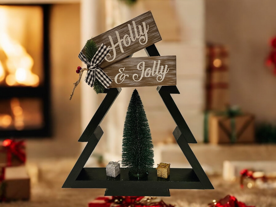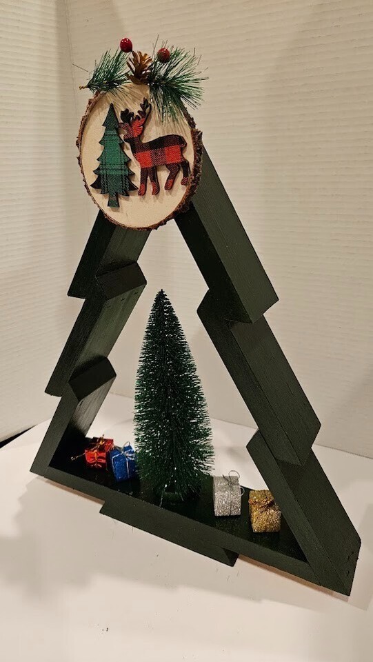 Add a touch of rustic charm to your holiday decor with this handmade wooden Christmas tree. Crafted in the United States, this hand painted wooden tree features dark green acrylic paint brushed onto select pine wood with a gloss lacquer finish. It is approximately the size of 16" h x 14" w x 3" d. Perfect for Christmas occasions, this decorated tree is a great addition to your home decor and to give as a thoughtful unique gift. Whether you want to personalize your Christmas decor or simply add a touch of festive cheer to your home, this wooden Christmas tree is a great choice. It is signed and dated by the artist on the back and will require approximately 3-5 business days to process your order. It's handmade design and attention to detail is sure to become a cherished part of your holiday decor.