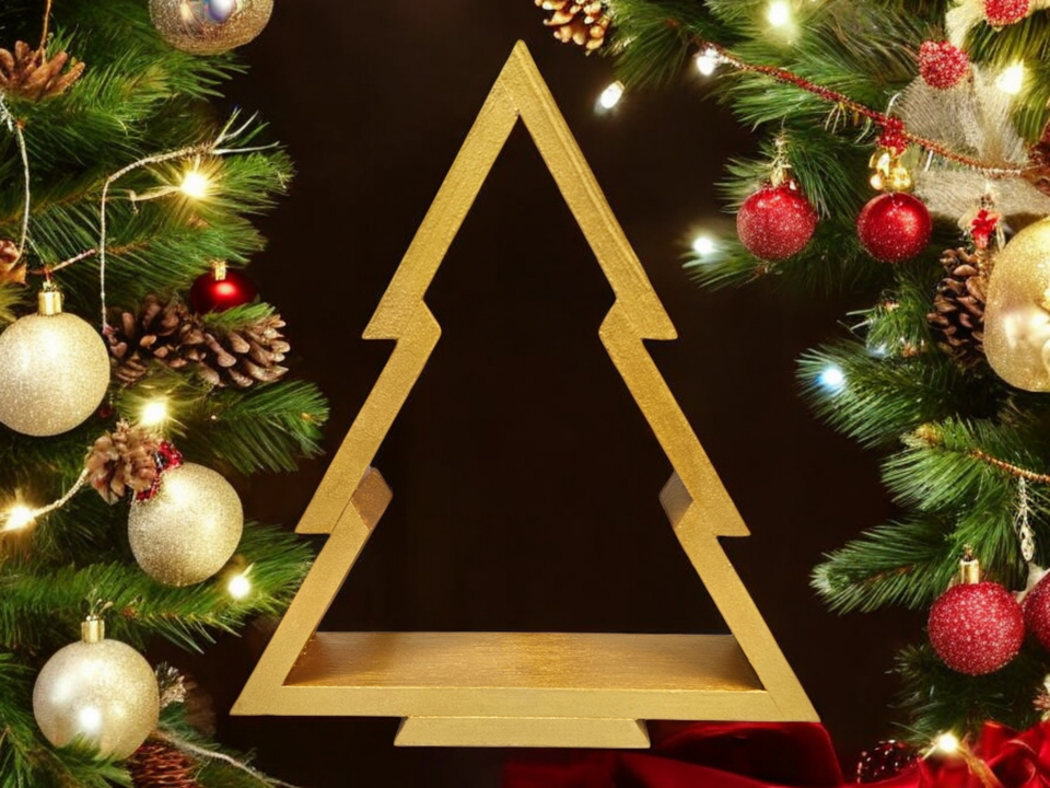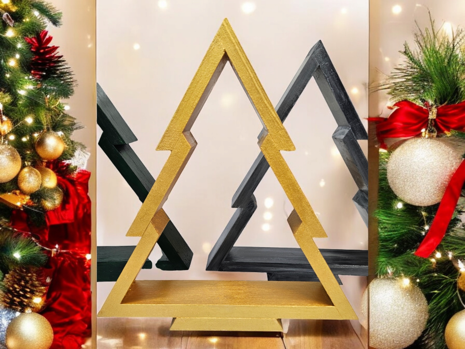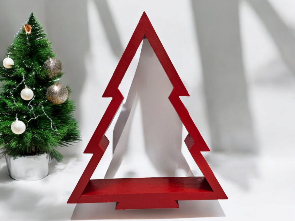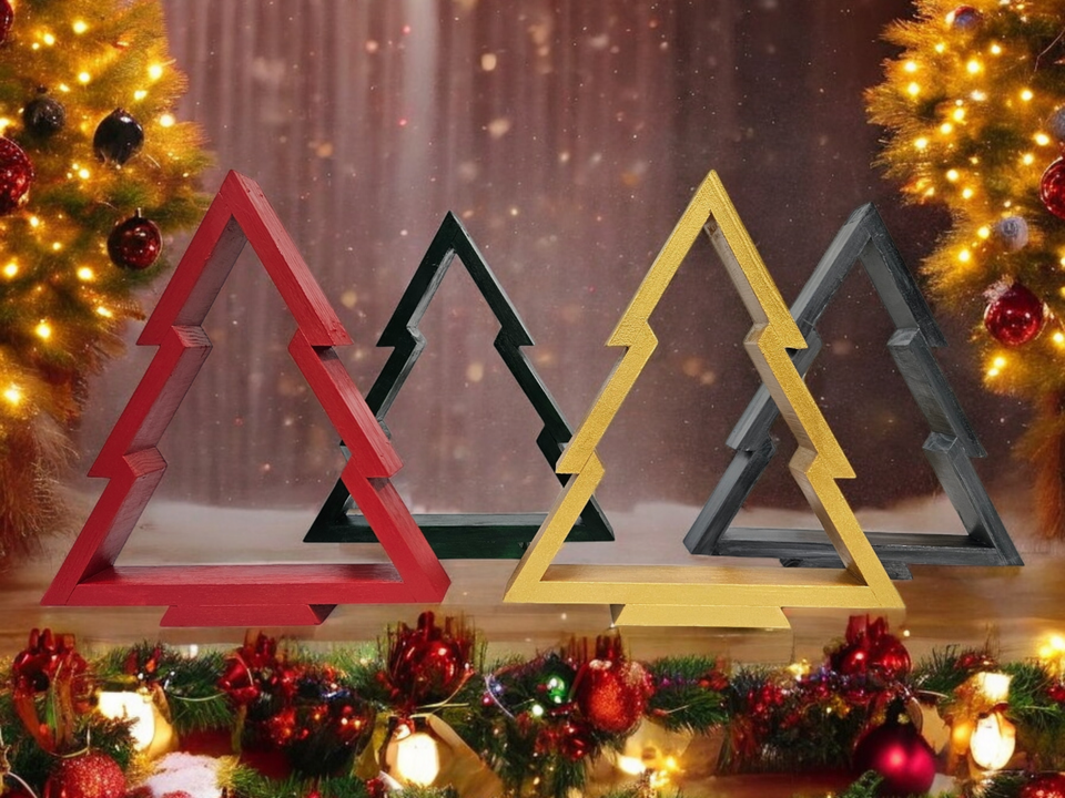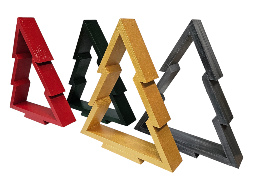 Add a touch of holiday cheer to your home with this handmade wooden decorative Christmas Tree. Crafted with care, this tree is perfect for any Christmas occasion. Its unique design features a color selection of gold, dark green, red and gray color scheme, and is made of quality select pine wood.