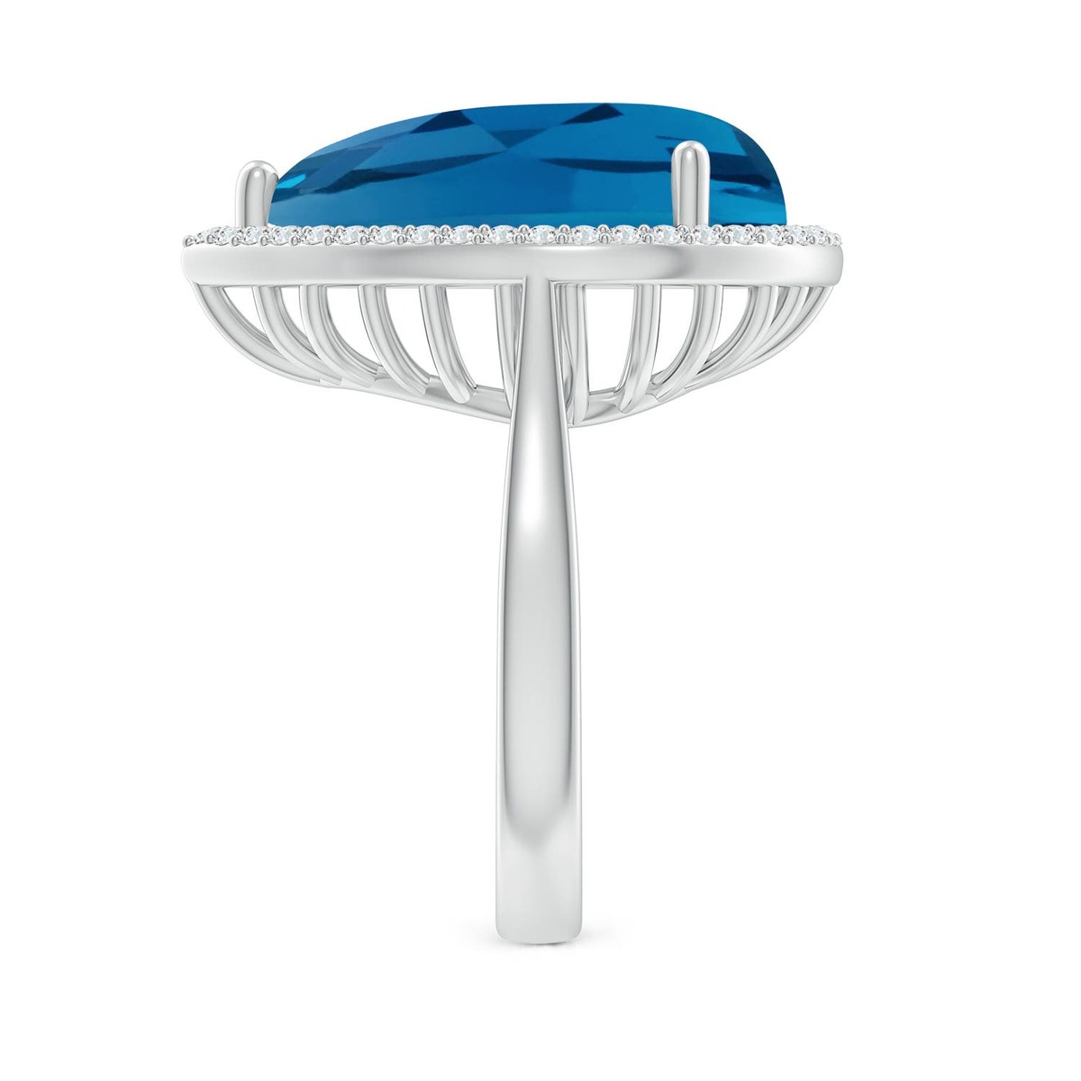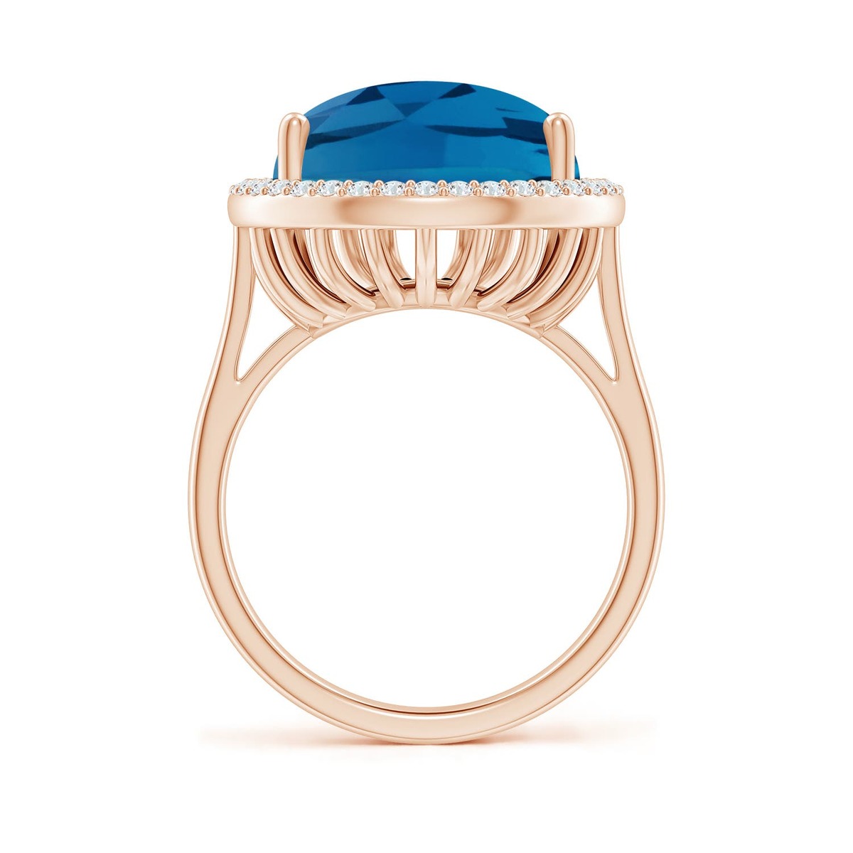 ANGARA 12.92 Ct London Blue Topaz Cocktail Ring with Diamond Halo in 14K Gold