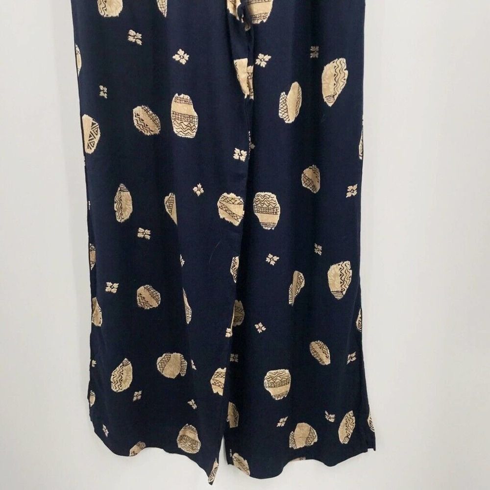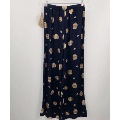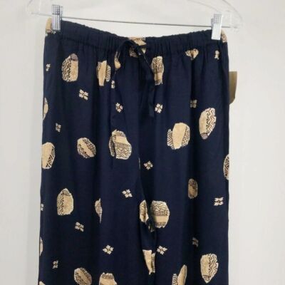 NEW Mix Nouveau Women's Size Large Palazzo Blue Beige Print Drawstring Pants