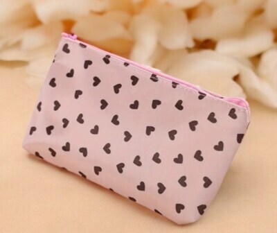 Small Hearts Zipper Makeup Bag Black Pink and similar items