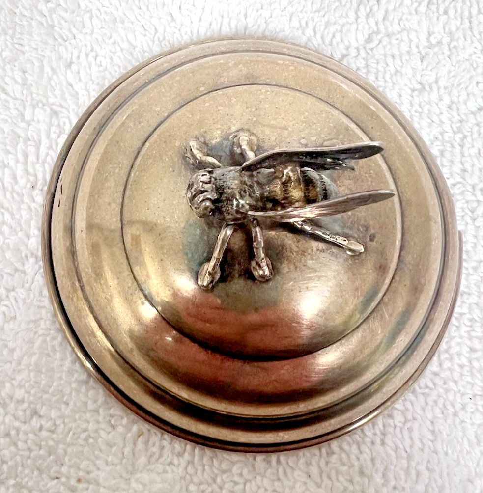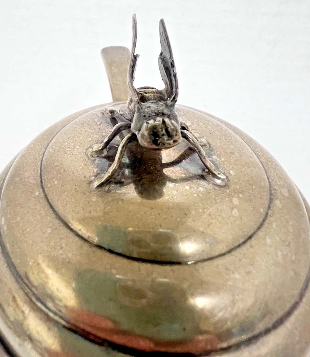 Vintage Sterling Silver Marked Figural Bee Lid and Spoon Honey Jar Pot 4 1/2"