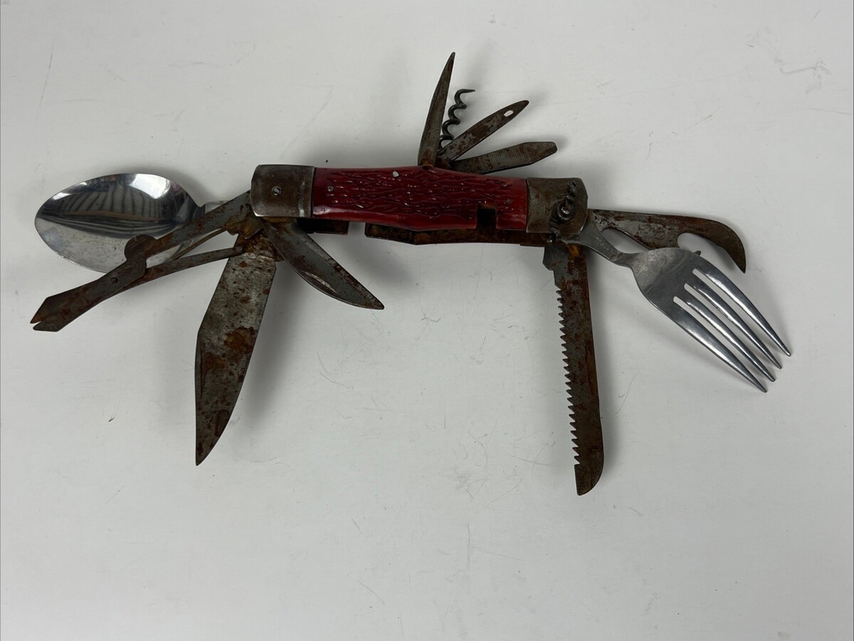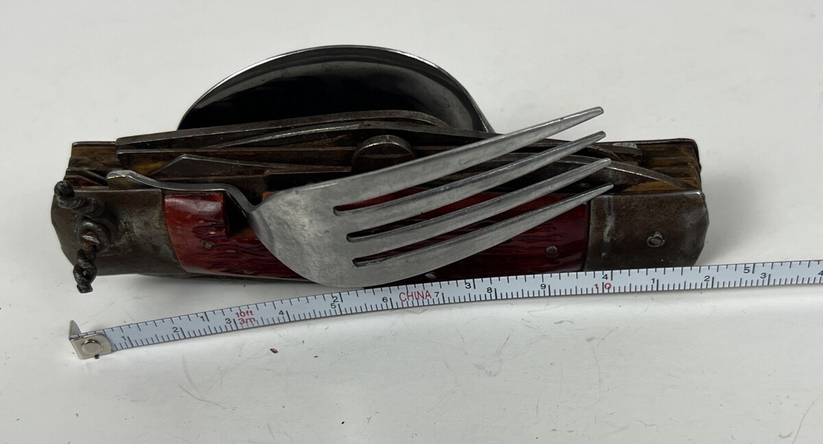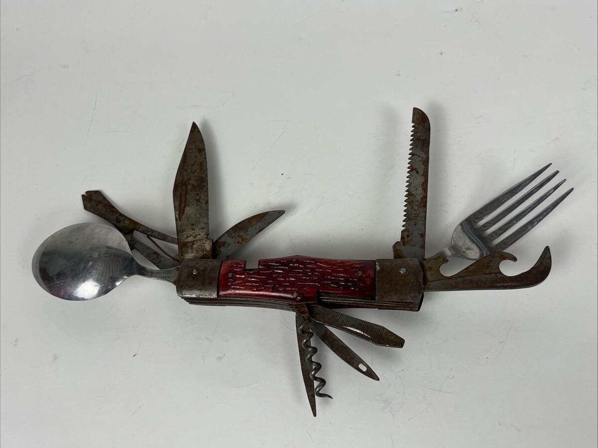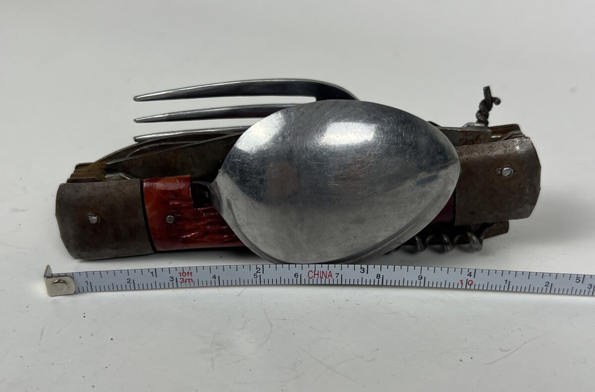 VINTAGE Pocket Knife Multi Tool Survival Stainless Steel Camping Spoon Fork