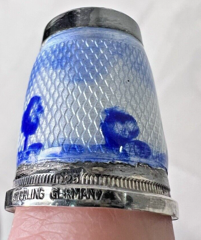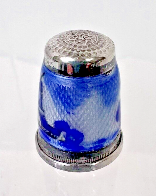 Stunning German Sterling Enamel Thimble Blue and 13 similar items