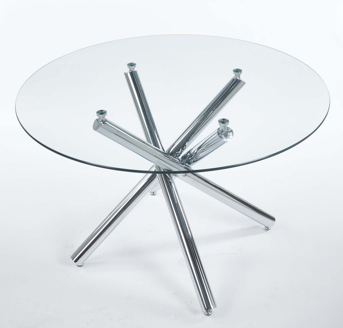 Mid-Century Glass Top Dining Set, Metal Leg Table for 4-6 Persons