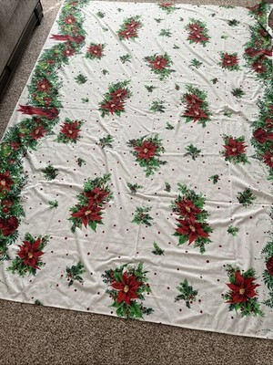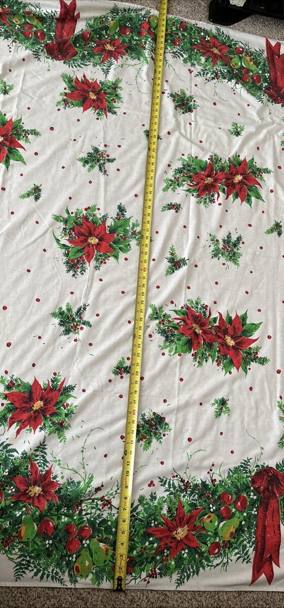 Vintage Spring Mills Christmas Red Poinsettia Bows Tablecloth 94”x70”Holiday