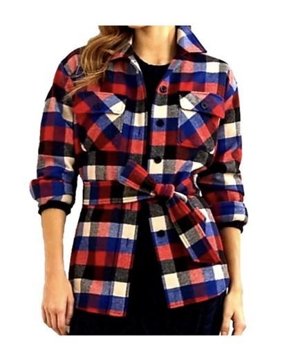Ralph Lauren Women's PXS Buffalo Check Belted Twill Shirt Jacket Wool LS NWT