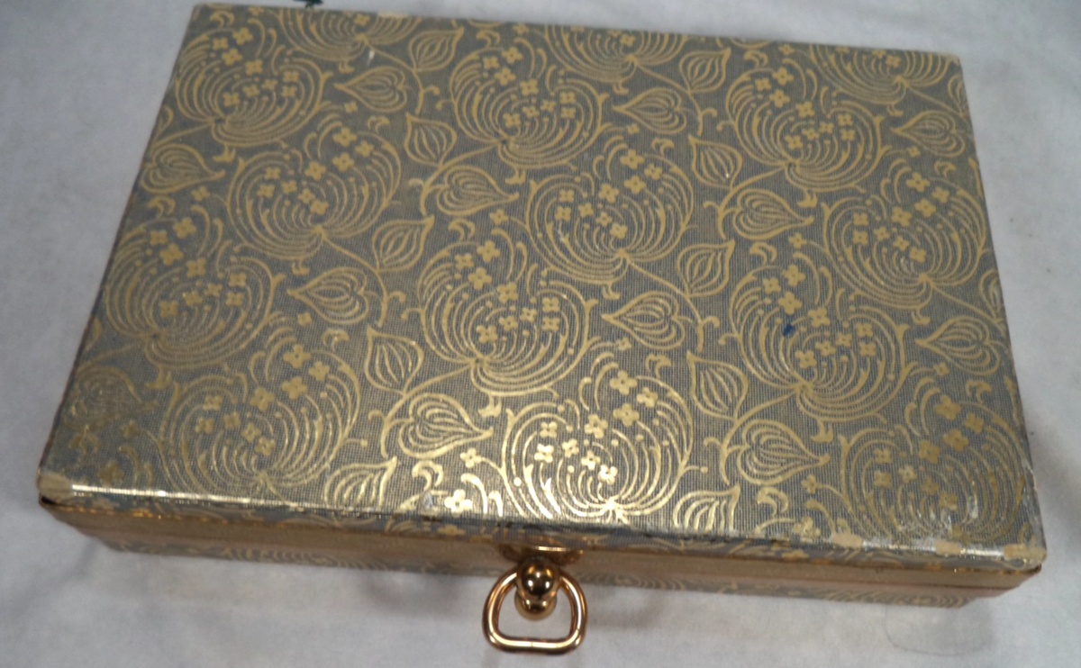 Vintage Claussner Mirrored Hosiery Nylon Travel Clasp Jewelry Box READ