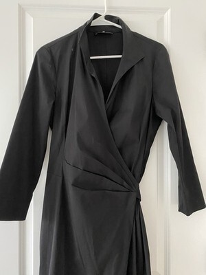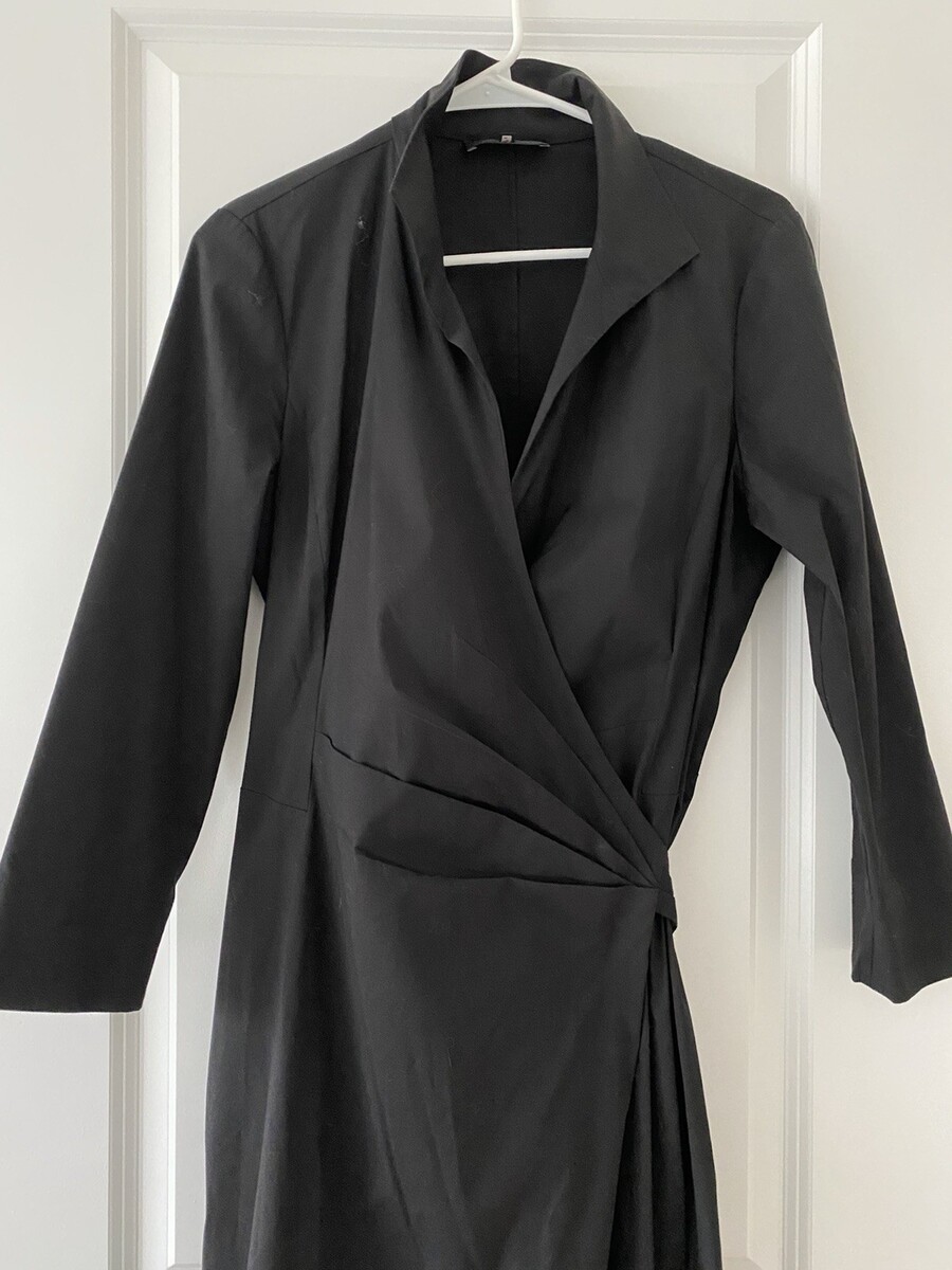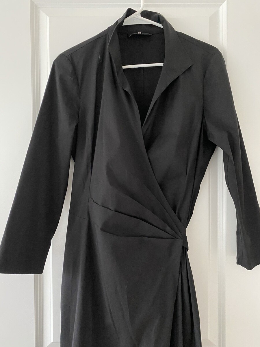 Lafayette 148 Woman Wrap Dress Size 8 Collared Midi Black Stretch Bs324