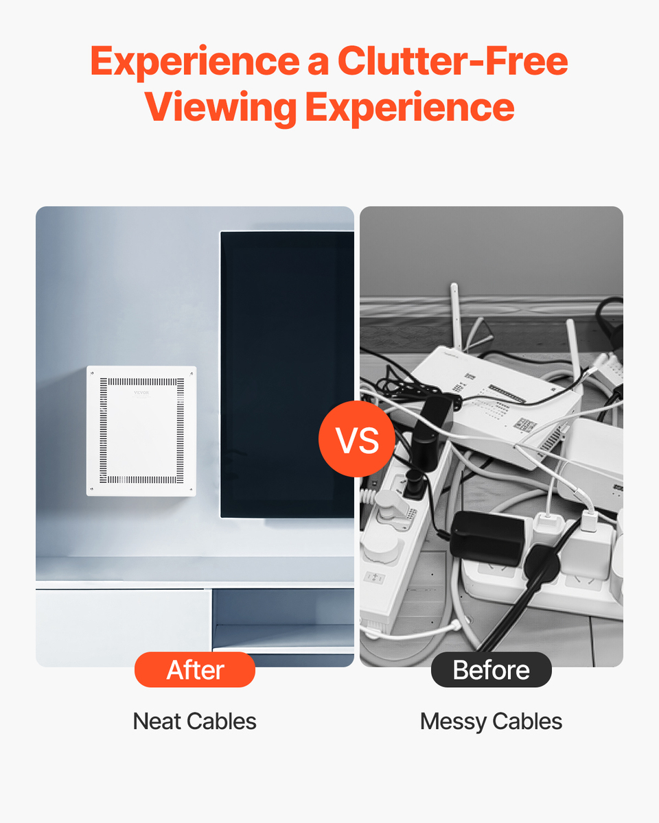Easily Fits Various Wall Types: This cable management box is ideally sized to fit 16-inch stud spacing, whether your home is new construction or a renovation. It installs seamlessly, allowing you to effortlessly achieve a clean, organized layout and efficient storage, no matter the wall type