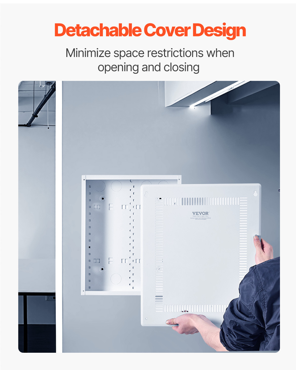 Detachable Cover Design: The detachable cover minimizes space constraints when opening and closing, making it easier to manage your devices. It also provides extra coverage to hide irregular cut edges, ensuring a polished, professional appearance, even if the installation isn't flawless