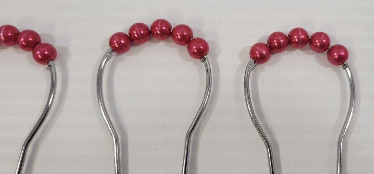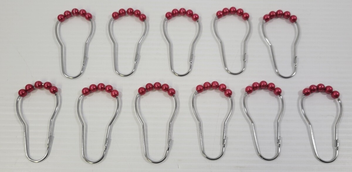 e5) Holiday Red Shower Curtain Rings Hooks Acrylic Roller Balls Stainless Steel