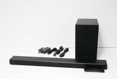 Description: Includes Soundbar, Subwoofer, Remote Control with batteries, Power Adapter, 2 x Power Cables, HDMI Cable. Scratches on the bodies of the soundbar and sub. Shabby mesh on sub.