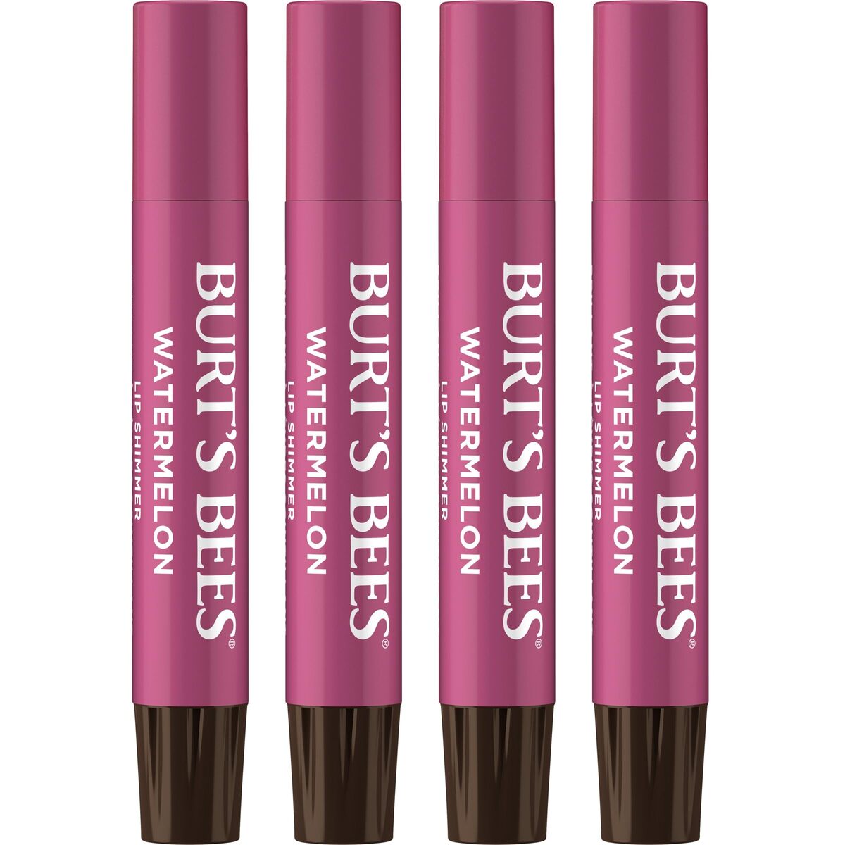 Burt?s Bees Lip Shimmer Watermelon; Warm, Luminescent Color; High Impact, Instant Moisture; with Shea and Cocoa Butters; 100% Natural Origin; 4 Tubes, 0.09 Oz. (Packaging May Vary)