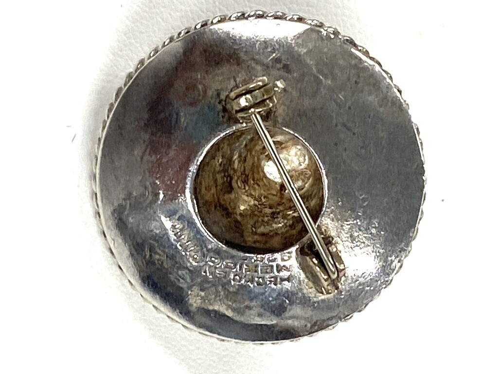 This is a very fine vintage piece. Stunning Sterling Silver Brooch. 925 Silver. It measures 1 3/8" across and is signed, but I cannot make out the signature. 5.8 grams of sterling silver.