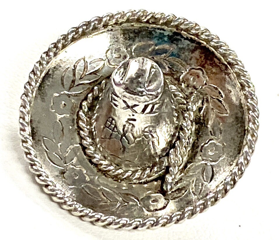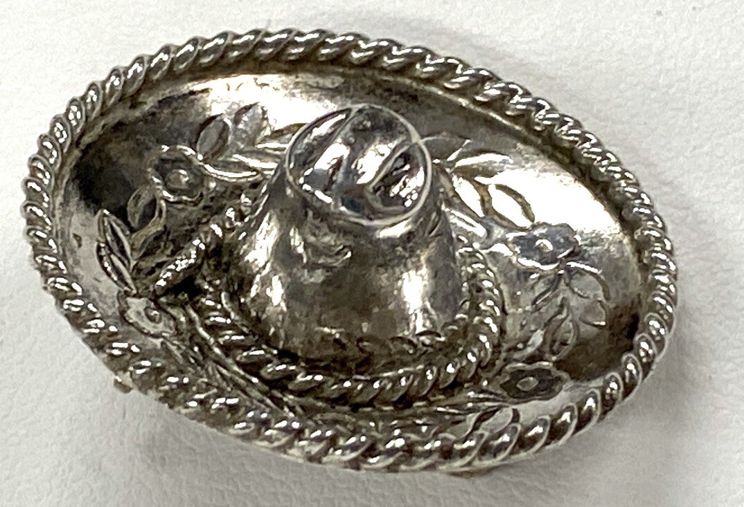 Vintage Sterling Silver Mexican Sombrero Hat Pin Brooch Floral Signed Mexico 925