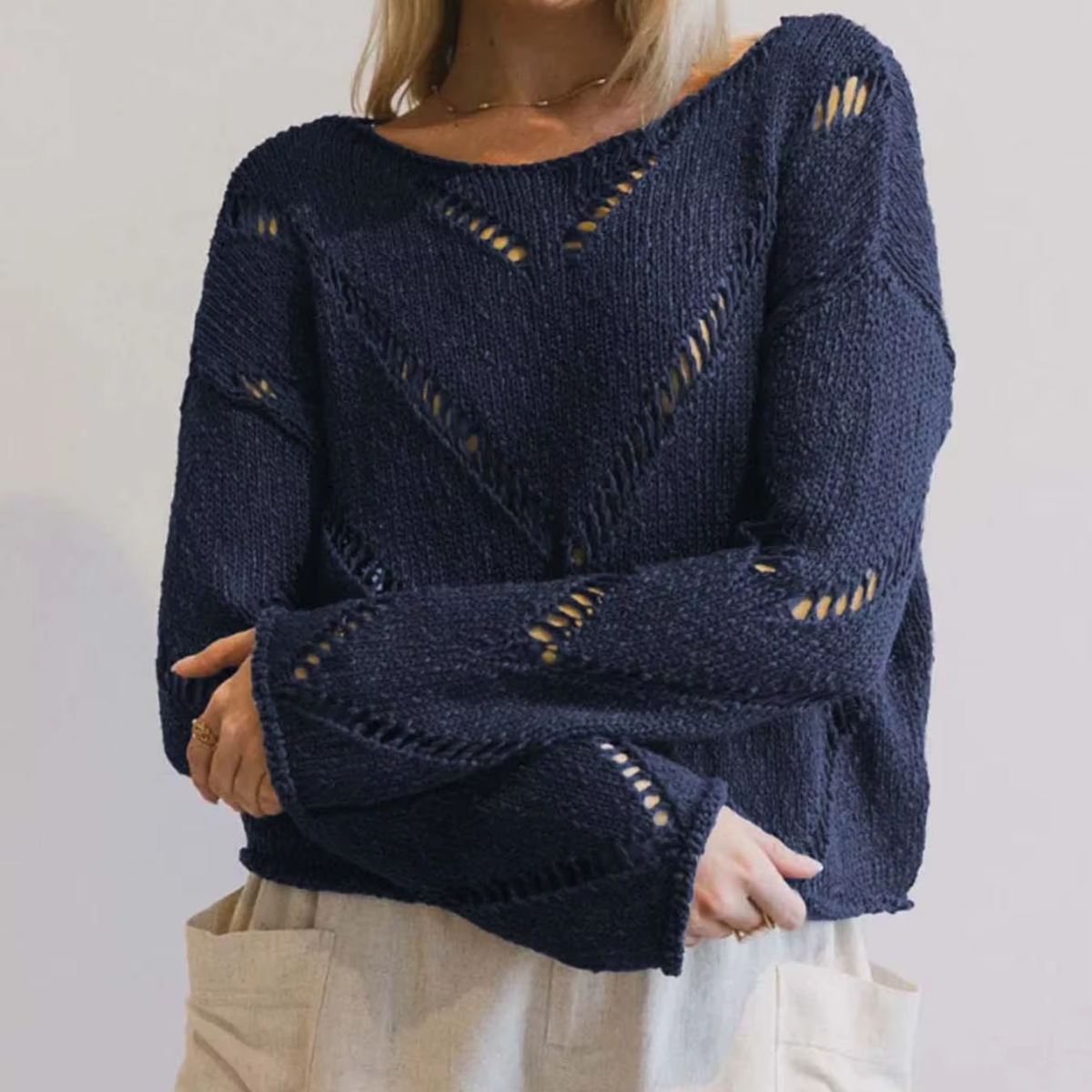 LINVYQRA Women's Hollow Out Lightweight Knit Sweater Long Sleeve Cropped Pullove