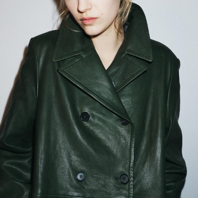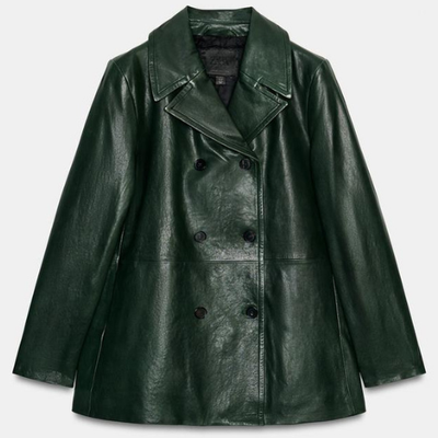 ZARA BNWT 2026. GREEN DOUBLE BREASTED REAL LEATHER BLAZER JACKET. 5127/240