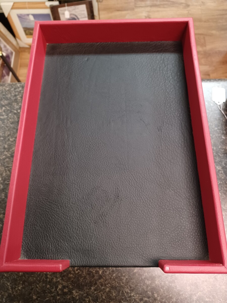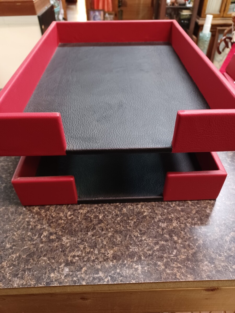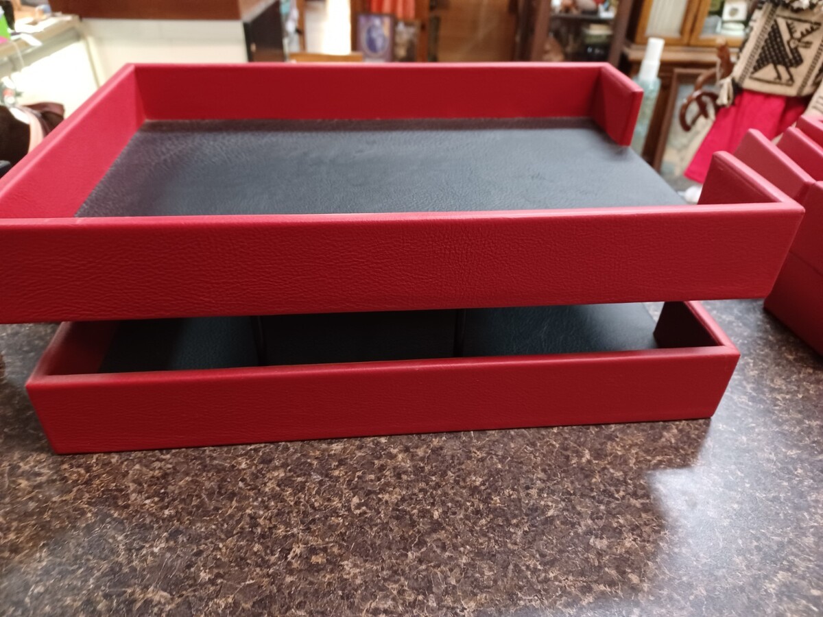 Red Leather Two Tier Legal Letter Tray Holder Paper Organizer for Desk 6"